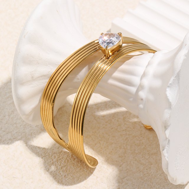 Discover the perfect blend of sophistication and style with this Asymmetric Stainless Steel Women’s Bracelet. Crafted from high-quality 316L stainless steel and beautifully plated with 18K gold, this bracelet brings a unique touch to any outfit. The intricate zircon stripe design, coupled with the sleek asymmetrical shape, ensures this piece stands out.