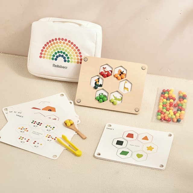 • Engaging Clip Beads: The set features rainbow-colored beads that can be picked up and sorted using a clip, perfect for encouraging fine motor development.