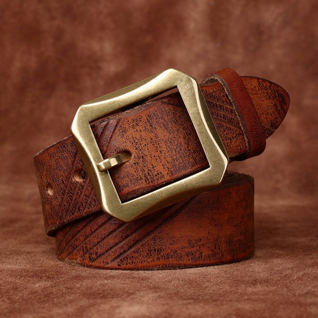 Men’s Genuine Leather Retro Jeans Belt – 1.5″ Brass Buckle