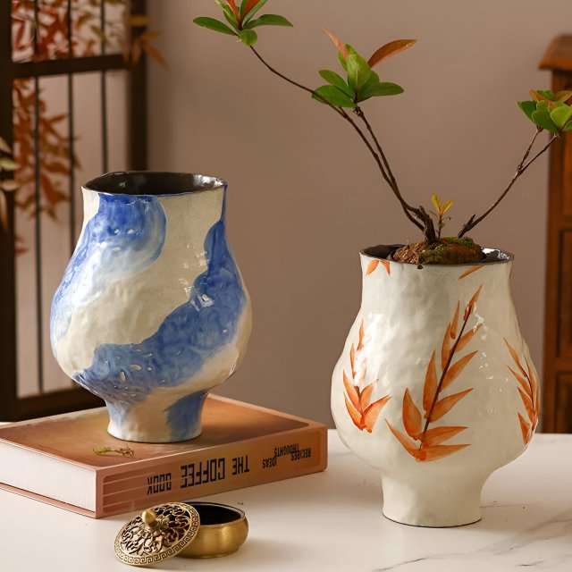 Painted Ceramic Table Vase for Floral Arrangements & Home Decor